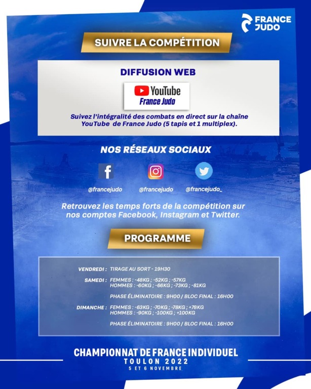 La compétition sera diffusée en direct sur YouTube sur la page France Judo.